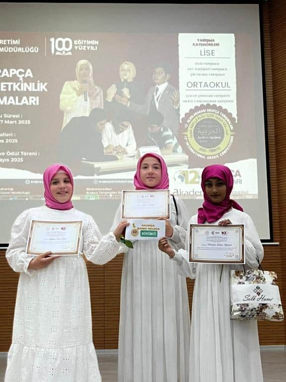 Din Öğretimi Genel Müdürlüğü tarafından Türkiye geneli ortaokullar arası şarkı kategorisinde düzenlenen ''12. Arapça Etkinlik Yarışmaları''na katıldık.